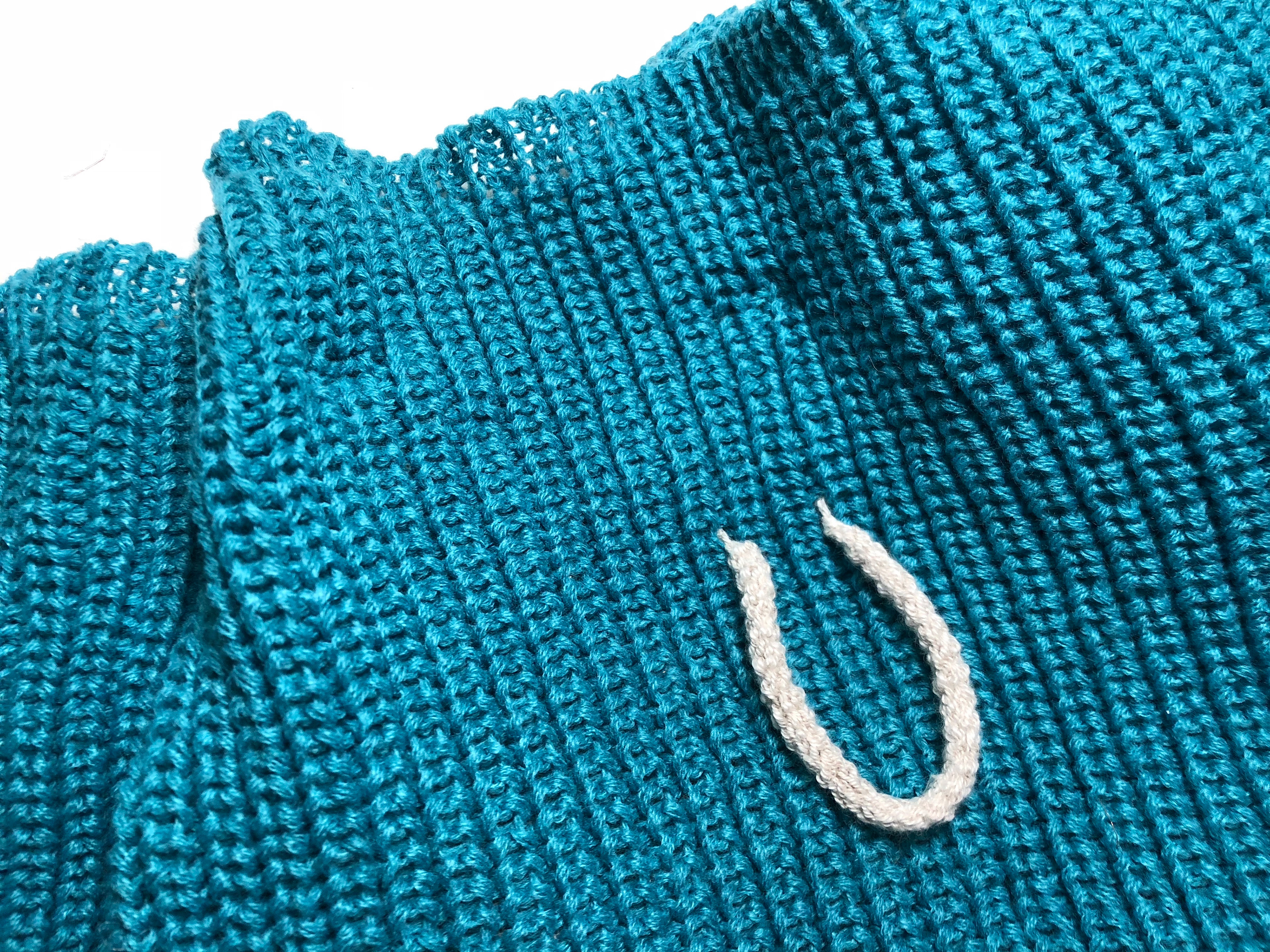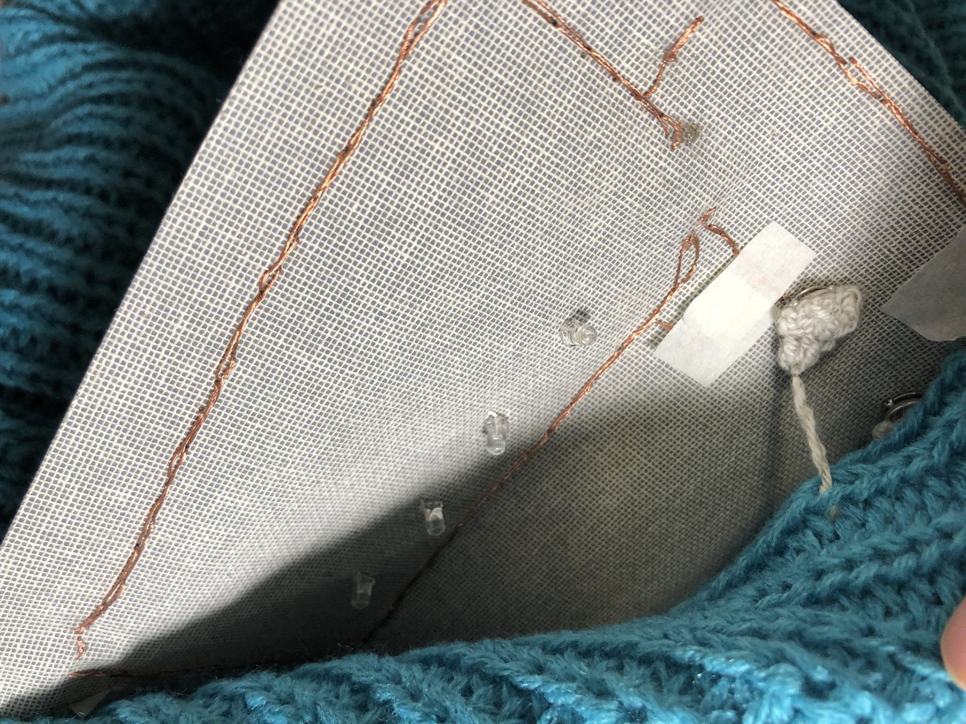Scarf blue yarn + hand-made stretchy sensor (french knitter)